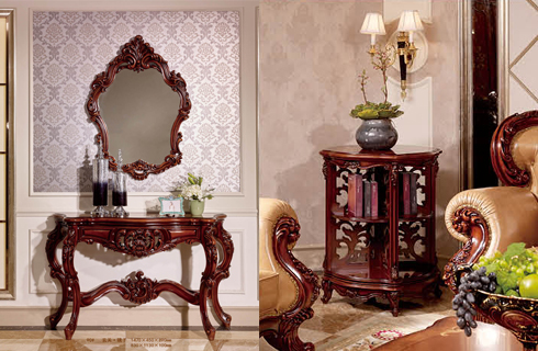 90#玄關臺+玄關鏡 | 9007沙發+9001大方茶幾+9215四角圓幾+9213雜物柜 |